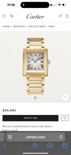 CARTIE 18 K Gold TANK FRANCAISE Medium Authentic 100% Watch Immaculate Condition $19,988Foster City, CA