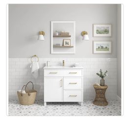 Home Collectors Bilston 36 in. Single (Sink) White Bath Vanity with White Engineered Stone Top $299Mesa, AZ
