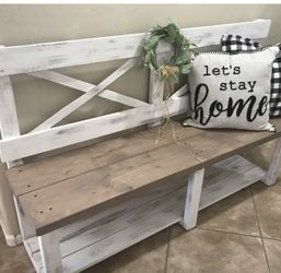 💜 Backrest bench farmhouse shabby chic rustic distressed farm style plank dining hallway entryway mud room porch custom$120Avondale, AZ