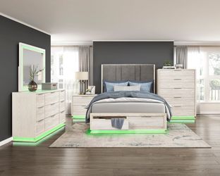BEDROOM SET QN(PLATFORM BED DRESSER MIRROR & NIGHTSTAND ) WHITE/LIGHT GREY W FABRIC HB &COLOR CHANGING LED$1,599Anaheim, CA