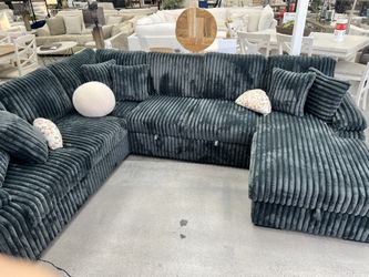U SHAPE CORDUROY FABRIC PULL OUT SECTIONAL RHF W /STORAGE CHAISE&6 PILLOWS$1,599Anaheim, CA