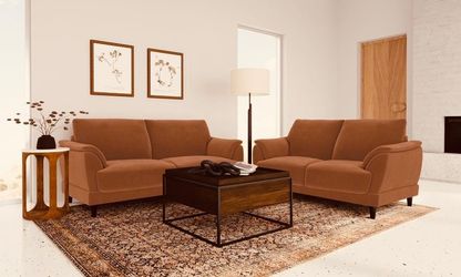 SOFA SET WOVEN FABRIC RUST VELVET CURVED TUFTED CURVED ARMS ESPRESSO FINISH LEGS $1,199Anaheim, CA