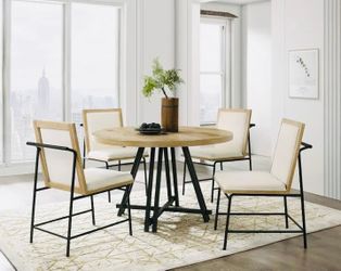 ROUND DINNING TABLE-OAK FINISH /METAL W 4 CREAM UPHOLSTERY CHAIRS W$829Anaheim, CA