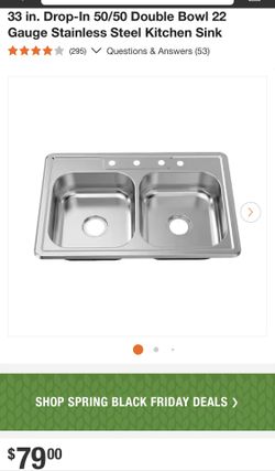 Glacier Bay 33 in. Drop-In 50/50 Double Bowl 22 Gauge Stainless Steel Kitchen Sink$40Phoenix, AZ
