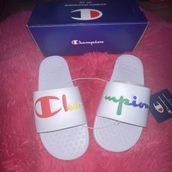 Champion Super Slide White/Rainbow Split Script Sandals Women's NWT Size 8$20Aurora, IL