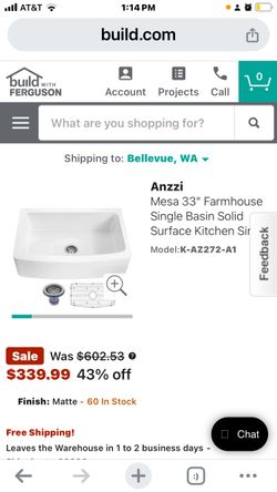 New Anzzi Mesa 33” Farmhouse Single Basin Sink$200Bellevue, WA