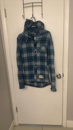 men's hooded flannel shirt in an off-white and blue plaid pattern$20Belle Isle, FL