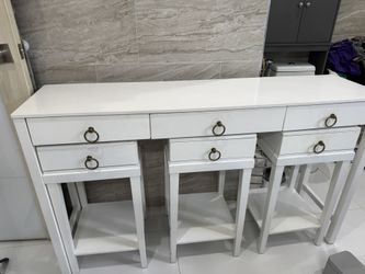 4 Pcs Modern White Desk With Drawers And 3 End Tables $200Boca Raton, FL