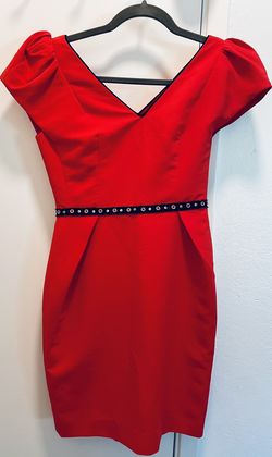 Bold Red Bodycon Dress w/ Puff Sleeves & Grommet Belt (Size S)$15San Jose, CA