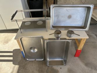 This is a set of stainless steel steam table pans, also known as hotel pans, which are standard commercial kitchen equipment. $45Fontana, CA