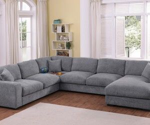 Trey 115"W Gray Chenille Sectional Sofa with Adjustable Backrest, Charging Ports, Pockets, Tufting, Storage Ottoman, Throw Pillows$1,379Coachella, CA