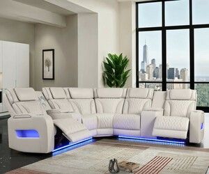 Jazz 117"W Ice Leather Aire Transformer Power Reclining Sectional w/ Power Headrest, Bluetooth Speakers, LED Lights, USB Ports, Storage & Cupholders $2,199Coachella, CA