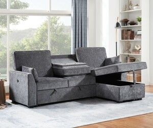 Emmy 89"W Dark Gray Fabric Sleeper Sectional Sofa with Reversible Storage Chaise, USB & USB-C Charging Ports, Cupholders$779Coachella, CA