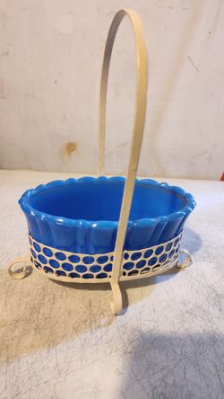 1930's-40's Vintage Akro Agate Glass 6" Blue Oval Planter W/ Original White Metal Caddy$49Elk Grove, CA