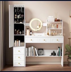 Full-Length Mirror Vanity Desk with Lights and Jewelry Storage Cabinet$150El Monte, CA