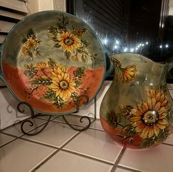 🌻 Hand-Painted Sunflower Ceramic Pitcher & Bowl Set $45Galt, CA
