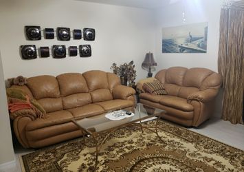 Leather Caramel Beige Sofa & Love Seat 2 Pc Set$600Seminole, FL