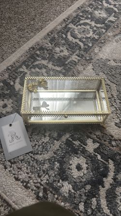 Rachel Ashwell jewelry box glass antique finish gold with bow$25Palm, PA