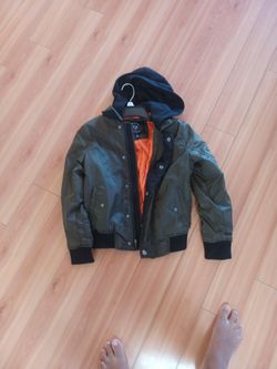 Bomber Jacket. Dark Green With Black Hoodie. Boys Size Medium. Local Pick Up In Whittier $10Whittier, CA