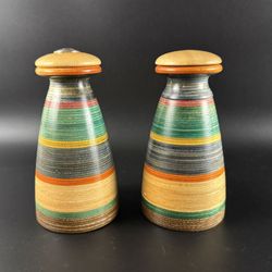 Vintage Mr Dudley Rainbow Striped Wood Salt and Pepper Mill Set - MCM (1970s)$25Mesa, AZ