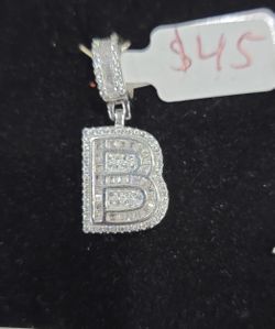 Iced “B” Initial .925 Silver Pendant 1"$50Chicago, IL