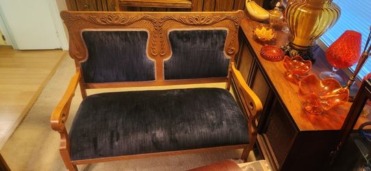 BLUE VELVET AND OAK COUCH$200Everett, WA