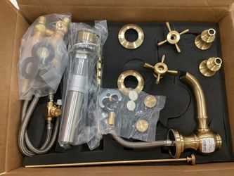 RESTORATION HARDWARE LUGARNO CROSS-HANDLE 8" WIDESPREAD FAUCET NEW LACQUERED BURNISHED BRASS $550Los Angeles, CA