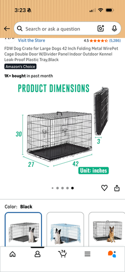 SoldDog Crate for Large Dogs 42 Inch Folding Metal WirePet Cage Double Door W/Divider Panel Indoor Outdoor Kennel Leak-Proof Plastic Tray,Black$20New York, NY