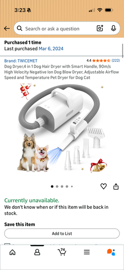 Dog Dryer,4 in 1 Dog Hair Dryer with Smart Handle, 90m/s High Velocity Negative Ion Dog Blow Dryer, Adjustable Airflow Speed and Temperature Pet Dryer$30New York, NY