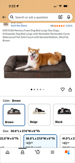 Memory Foam Dog Bed Large Size Dogs, Orthopedic Dog Bed Large with Washable Removable Cover, Waterproof Pet Sofa Couch with Nonskid Bottom, 36x27x6, B$10New York, NY