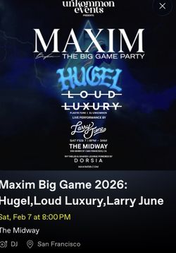 Maxim Big Game 2026: Hugel, Loud Luxury, Larry June$199San Francisco, CA