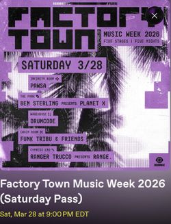 MMW Factory Town Saturday Tickets$199Hialeah, FL