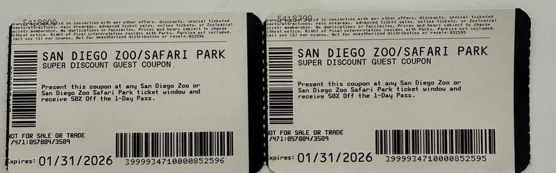 Zoo 50% Off Coupon Ticket $10Lemon Grove, CA