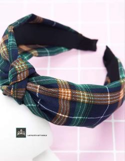 New Green, Brown And Black Plaid Knotted Hairband Knitting Hair Hoop For Women $10Charlotte, NC