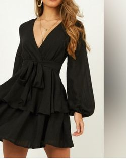 DO+BE V Neck Solid Black Full Sleeve Slim Waist Mini Dress Size Small$15Nashville, TN