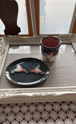 Darling Hummingbird Pottery mug With Hummingbird plate. $18Lombard, IL
