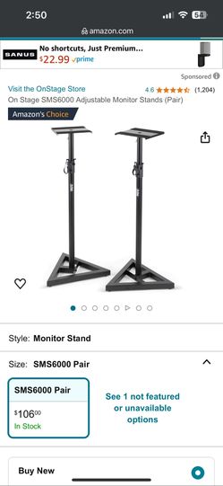 On Stage SMS6000 Adjustable Monitor Stands (Pair)$70Irvine, CA