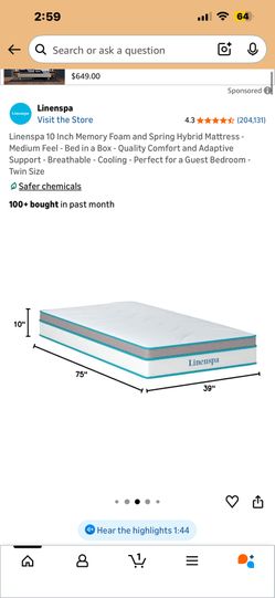 10” Spring And Memory Foam Hybrid Mattress $120Los Angeles, CA