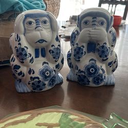 2 Monkey SPEAK & HEAR NO EVIL Figurine - Vintage Blue and White Floral Chinoiserie $75Las Vegas, NV