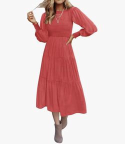 NEW Women's Casual Long Sleeve Crew Neck High Waist Smocked Flowy Tiered Midi Dress 100% Rayon Size Medium $10Visalia, CA
