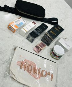 Sherpa Belt Bag,50 SPF Sunscreen, Anti-Aging Serum,Body Shimmer, Nicotinamide Vit C Face Cream,Revolution Glow Drops, Batana Oil, N.Covers, Makeup Bag$10Visalia, CA
