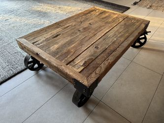 SoldIndustrial Rustic Coffee Table - Wood Top + Metal Wheels$45Glendale, CA