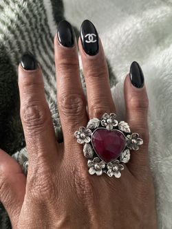 Big Silver 925 Frida Floral Ring with Red Heart Gemstone$90Schaumburg, IL