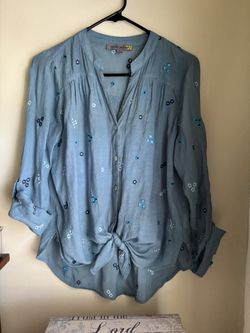 Chic blue top with elegant floral details. Ideal for everyday style. 65%RAYON/RAYÓN 35%POLYESTER/POLIESTER In good condition small$21New Castle, Delaware