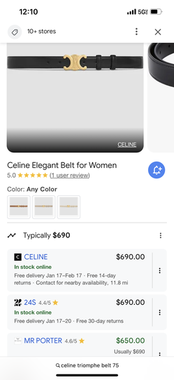 Celine- Medium Triomphe Belt In Taurillon Leather$150Buena Park, CA