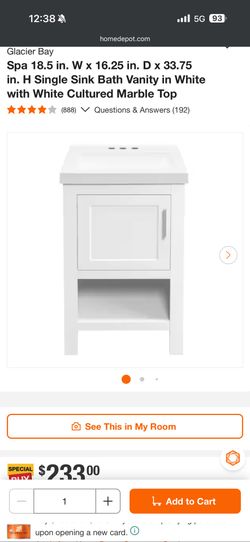 New Glacier Bay 18.5 in. W × 16.25 in. D x 33.75 in. H Single Sink Bath Vanity in White $75 NO BOX $75Phoenix, AZ