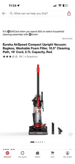 Eureka AirSpeed Compact Upright Vacuum: Bagless, Washable Foam Filter, 10.5" Clean $40$40Phoenix, AZ