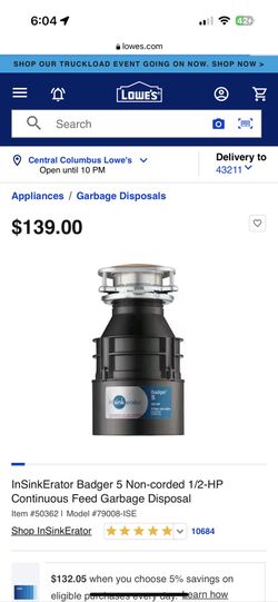 Insinkerator Garbage Disposal$85Columbus, OH