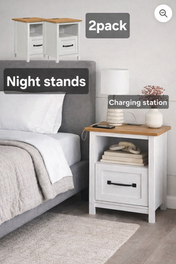 Night stands 2pack with charging station wood y white$120El Paso, TX