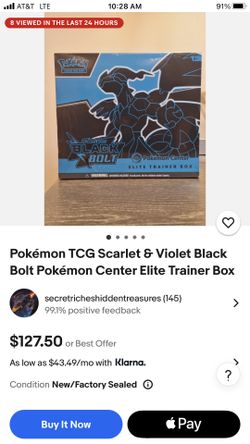 Pokémon scarlet and violet, black bolt elite trainer box$70Glendale, AZ
